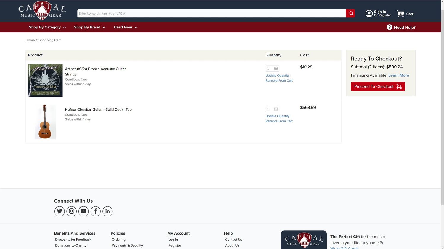 Capital Music Gear LLC was formed in 2018 in Madison Wisconsin with the sole purpose to improve the online shopping experience for musicians and music enthusiasts. Founder Cory Borgen noticed many sites are similar in how they have similar promotions and product information.