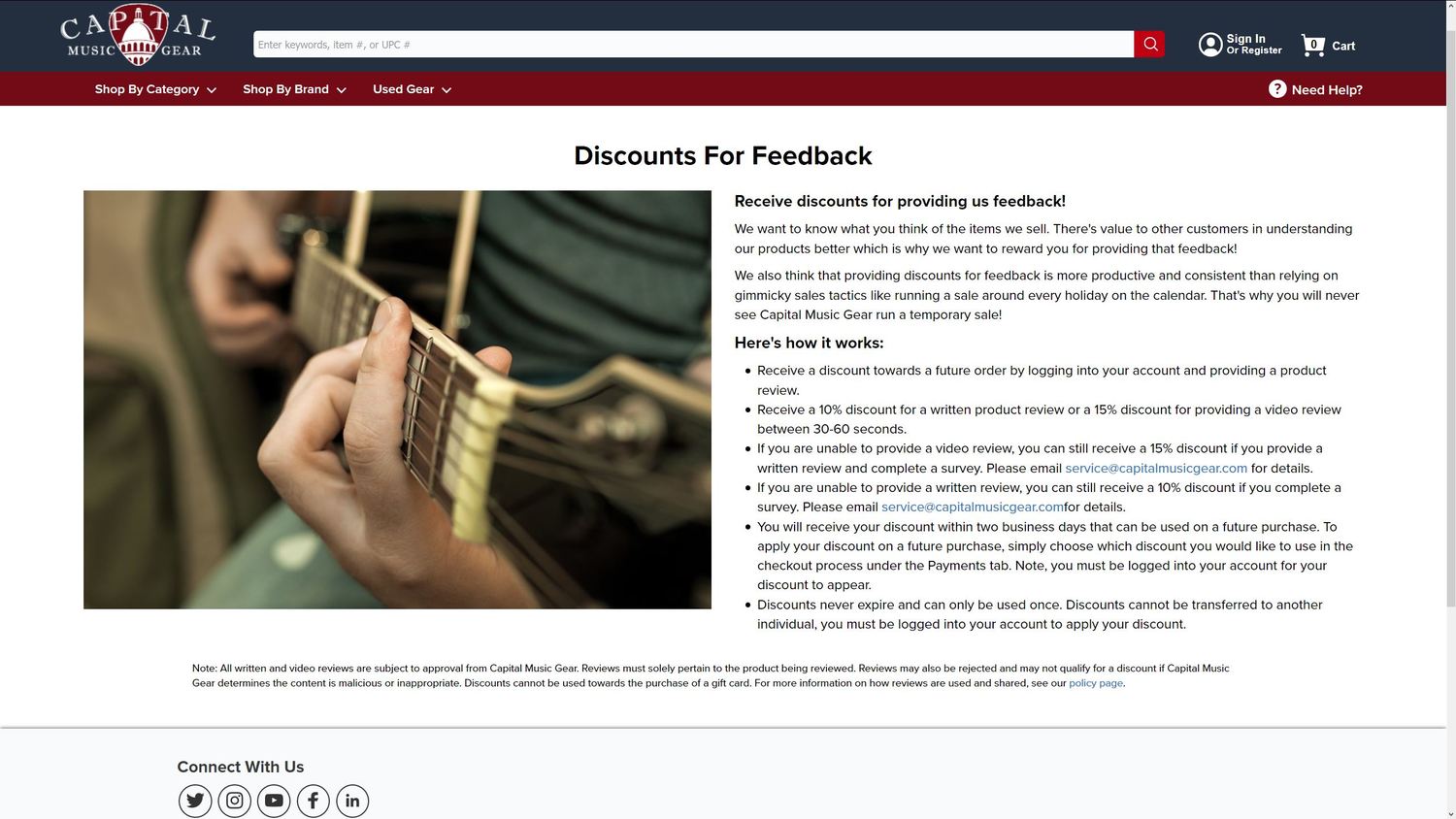 Most individuals have little incentive to provide feedback but strongly rely on this feedback when making purchasing decisions. Many individuals also have little interaction with organizations working to improve the music industry. Capital Music Gear is working to bridge both of these gaps.