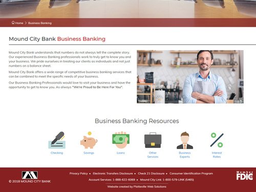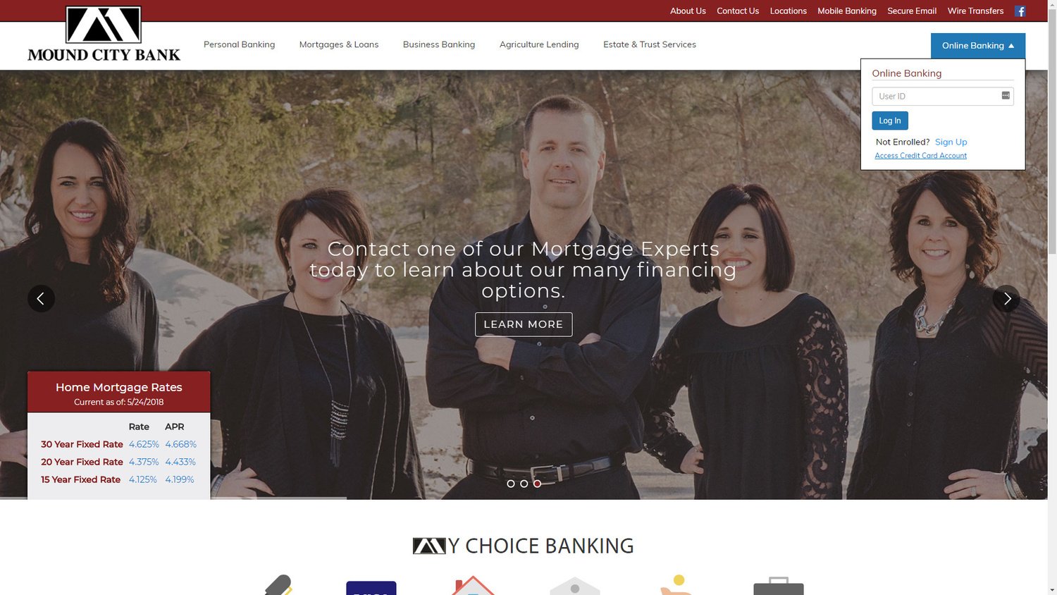 Mound City Bank has come a long way from its humble beginnings as a $55,000 total asset bank in 1915. Today with assets of over $360 million, six locations and over 65 full-time equivalent employees, we are "Proud to Be Here for You” building lasting relationships with our premier financial solutions.