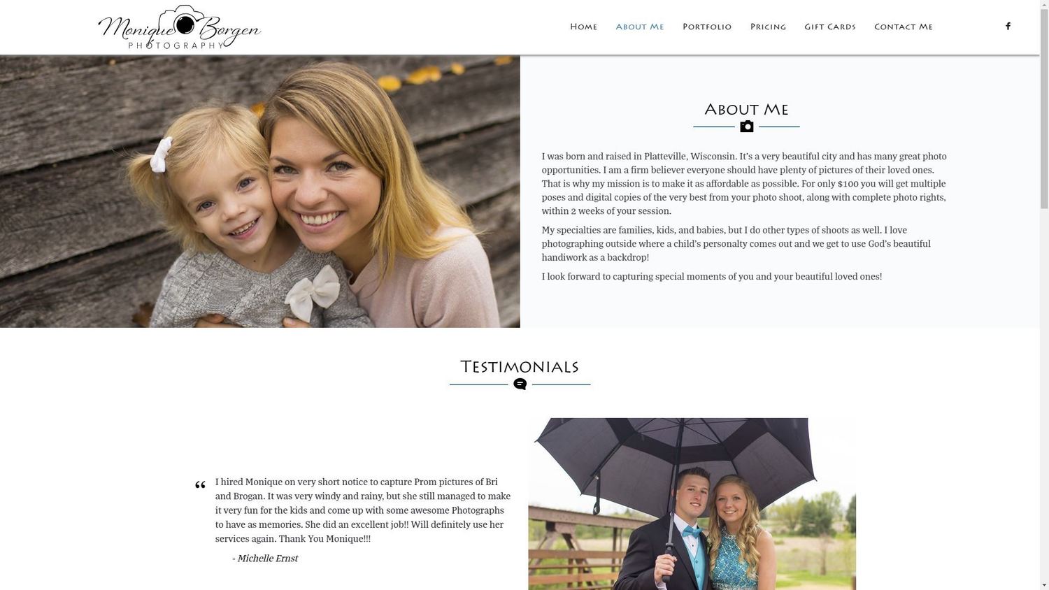I am a photographer from Platteville, Wisconsin. I offer quality, affordable photography packages for most occassions.